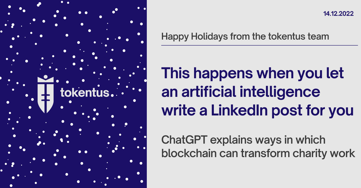 For the last blockchain blog post of this year, we wanted to try something special before we return to our regular, non-artificial posts at the beginning of next year. So, we let ChatGPT, the new star in the app sky, write a LinkedIn post for us.